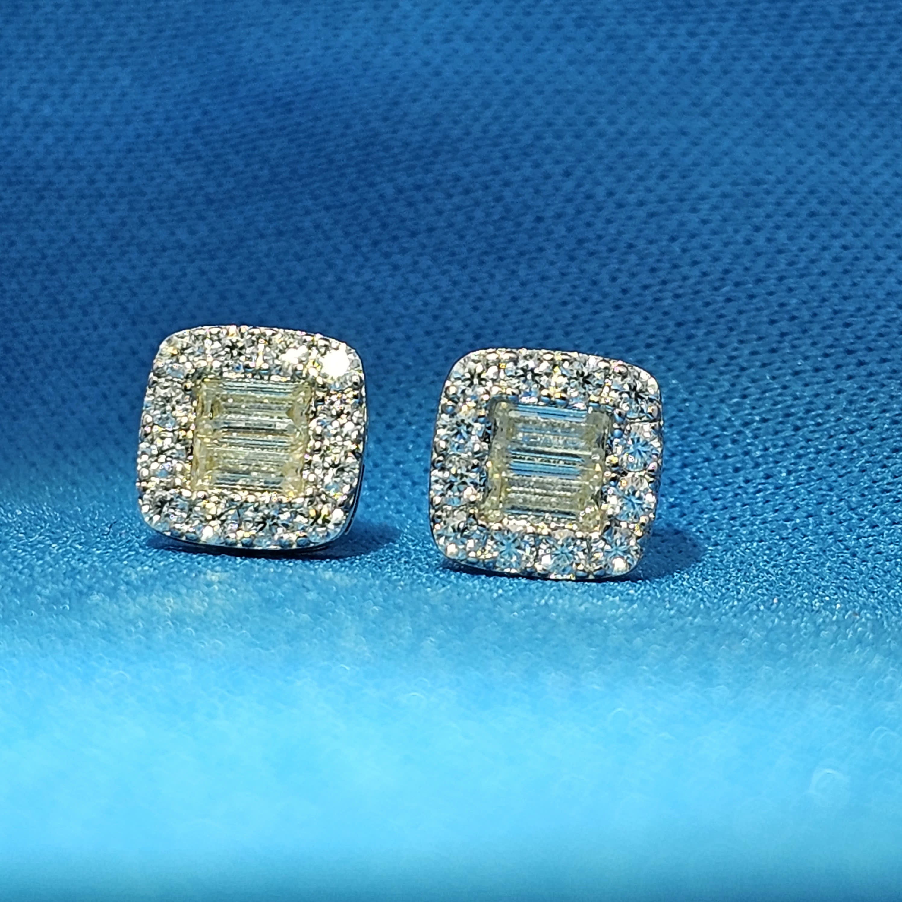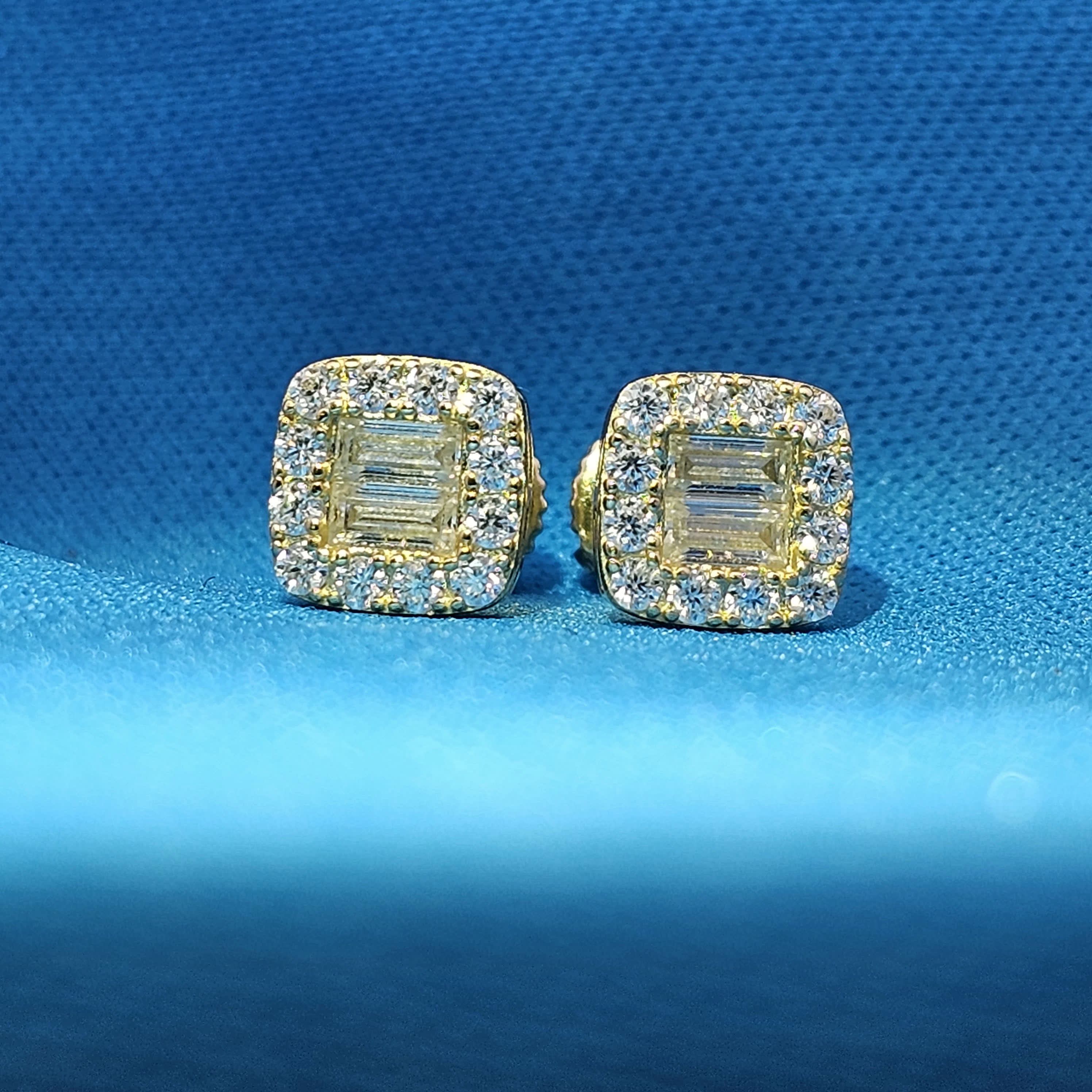Square Design: The square-cut moissanite stones create a clean, modern silhouette, offering maximum brilliance and light reflection for a striking visual effect.