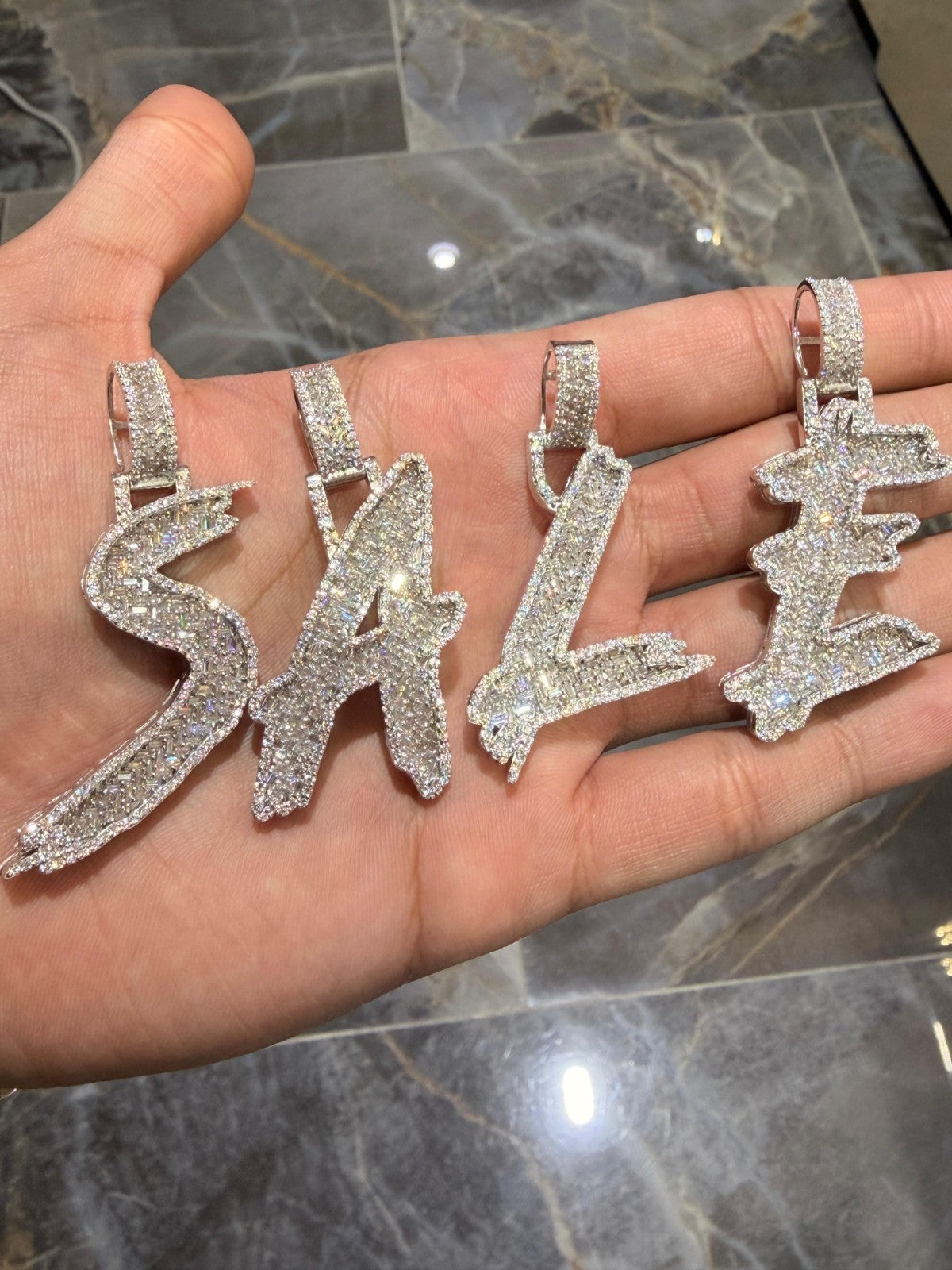 Make a statement with this custom-made Moissanite Initial Pendant Set, expertly handcrafted by House of Moissanite. Designed with bold drip-style lettering and fully iced out with brilliant stones, this piece delivers the ultimate luxury shine at an unbeatable value.