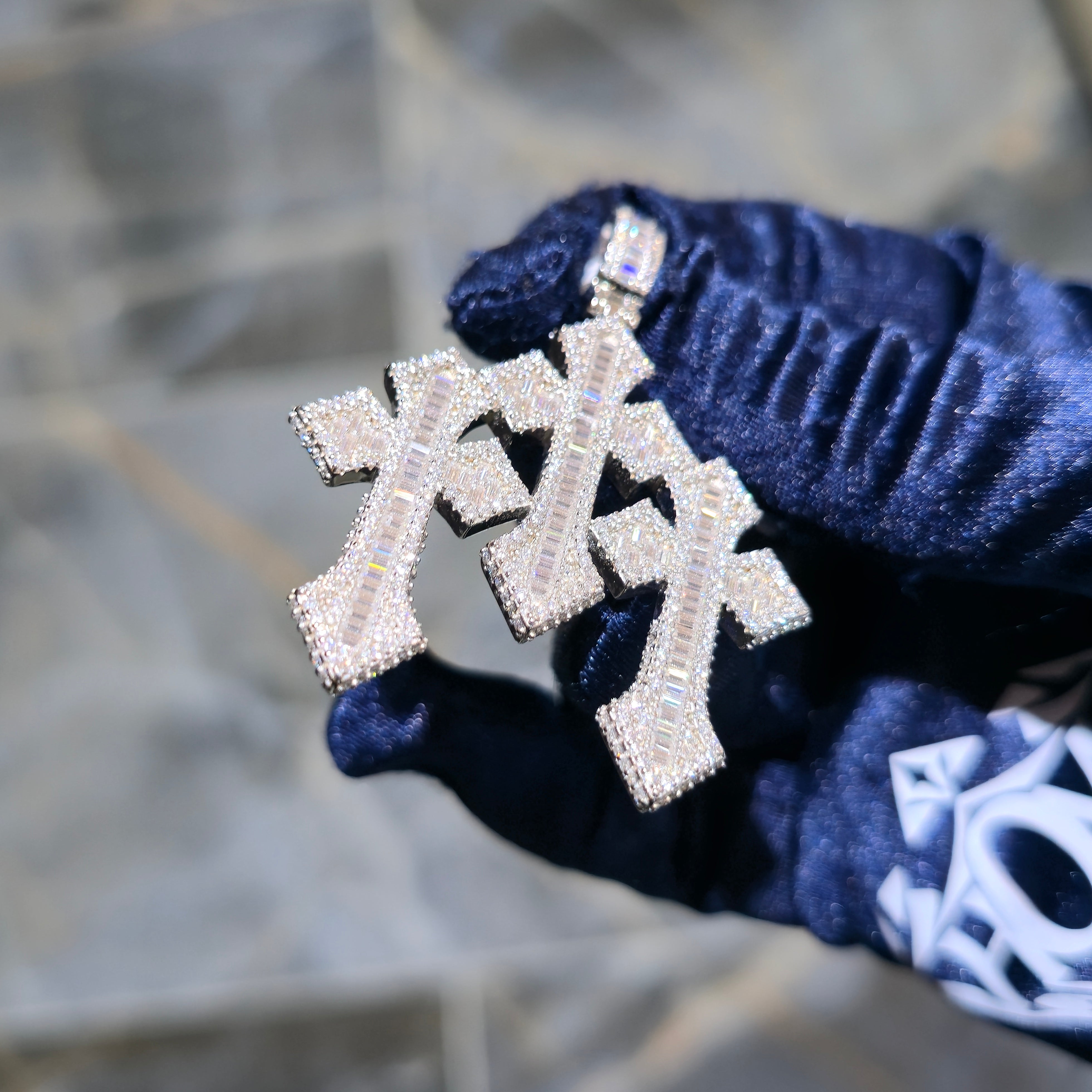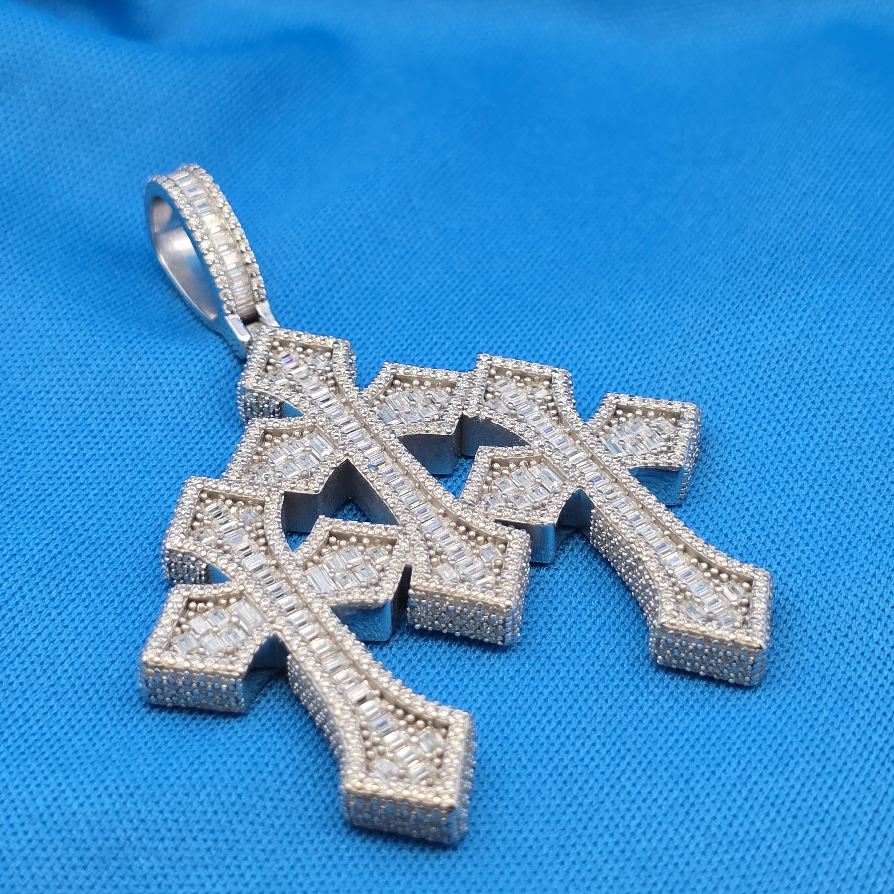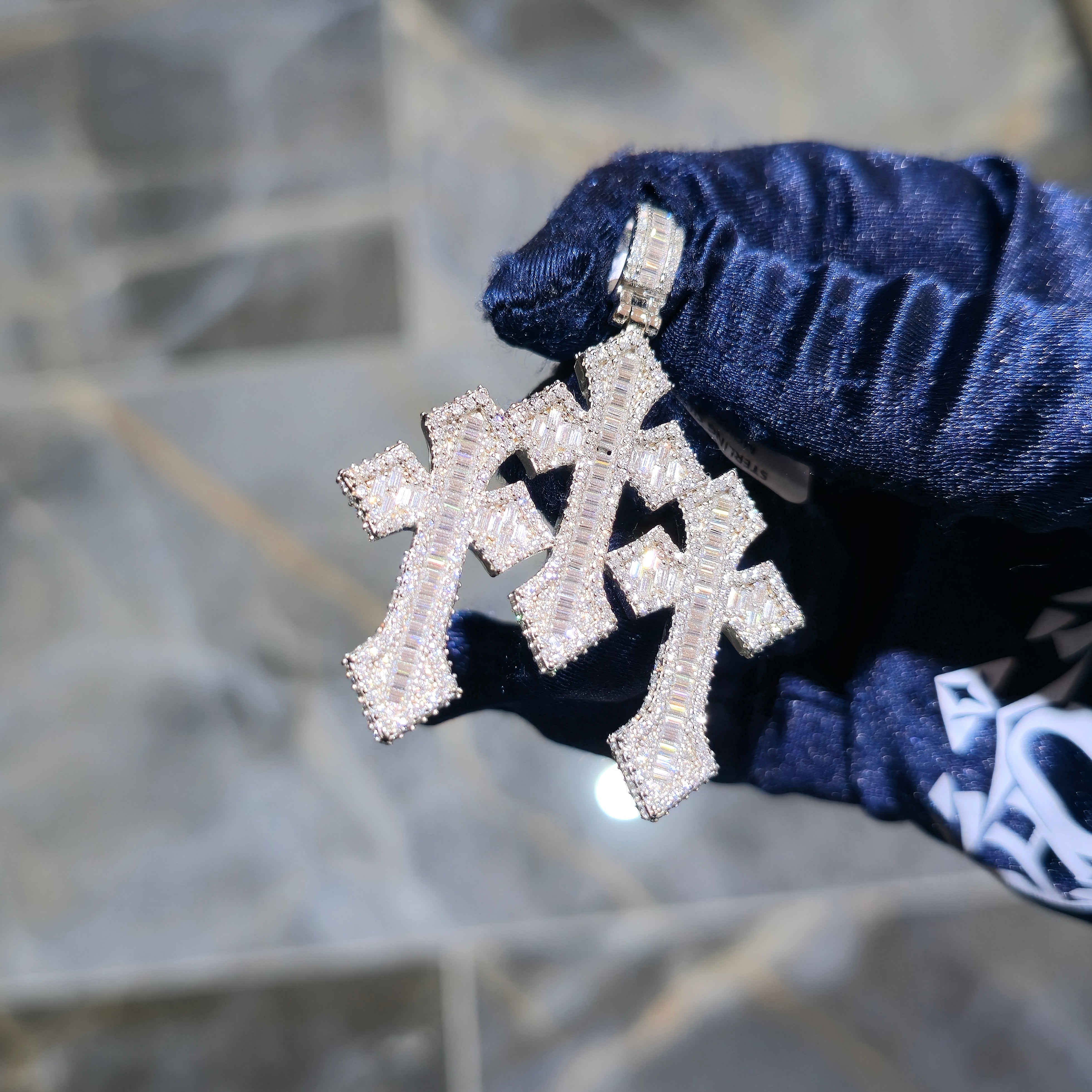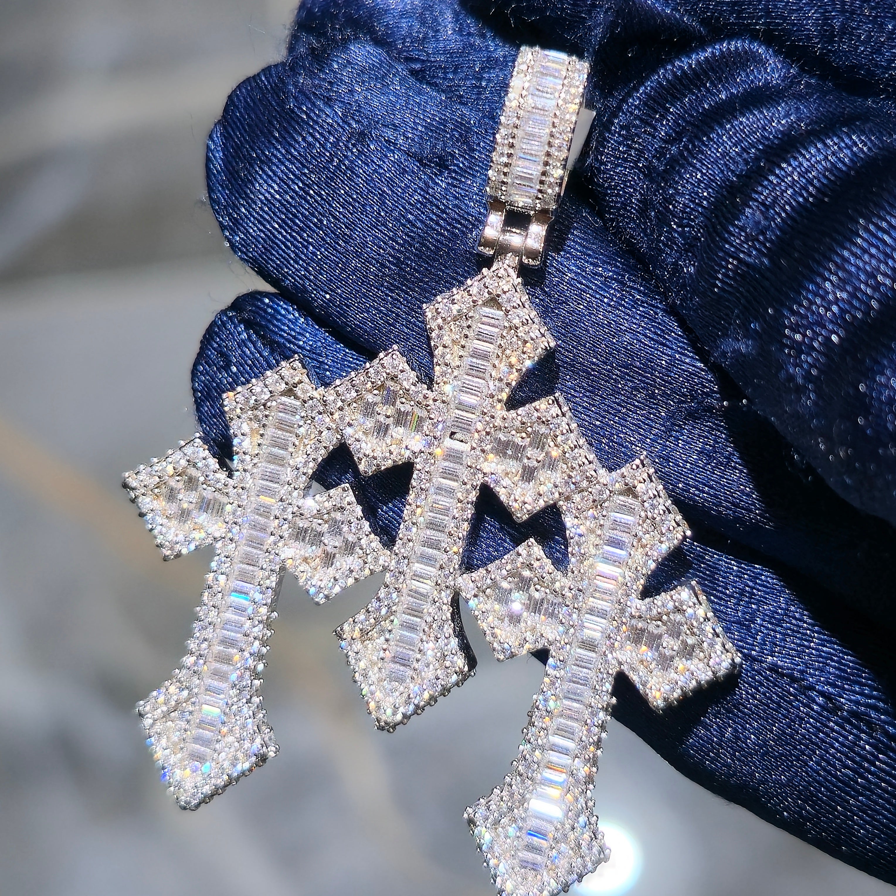 Bold faith and high shine come together in the House of Moissanite Triple Cross Pendant — a striking piece crafted to reflect strength, spirituality, and style. Designed for impact, this pendant is layered with brilliance and built to last.
