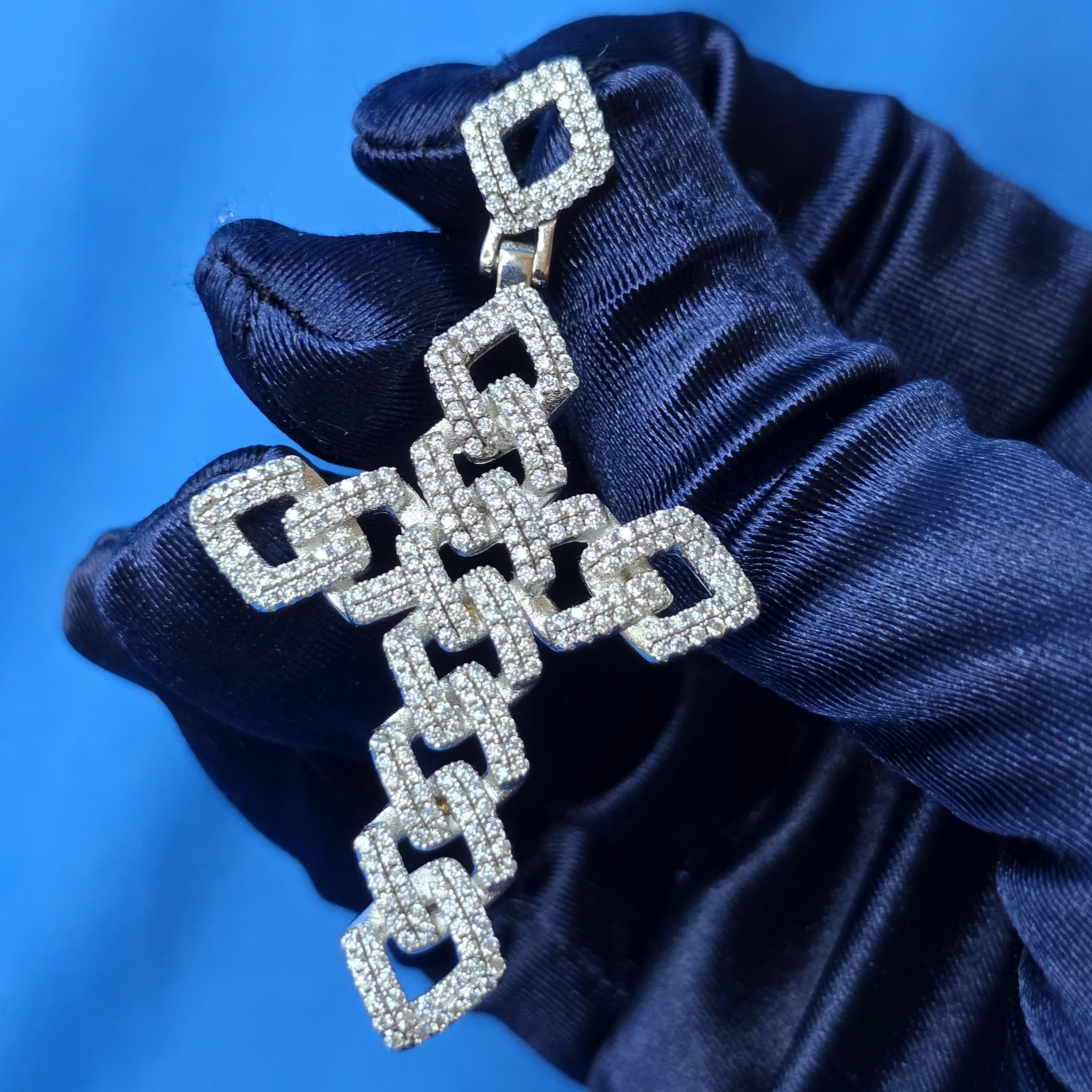 Redefine tradition with the House of Moissanite Link Cross Pendant — a bold blend of spiritual symbolism and modern edge. Featuring a sleek cross design formed from link-style detailing, this pendant delivers a fresh take on a timeless icon.