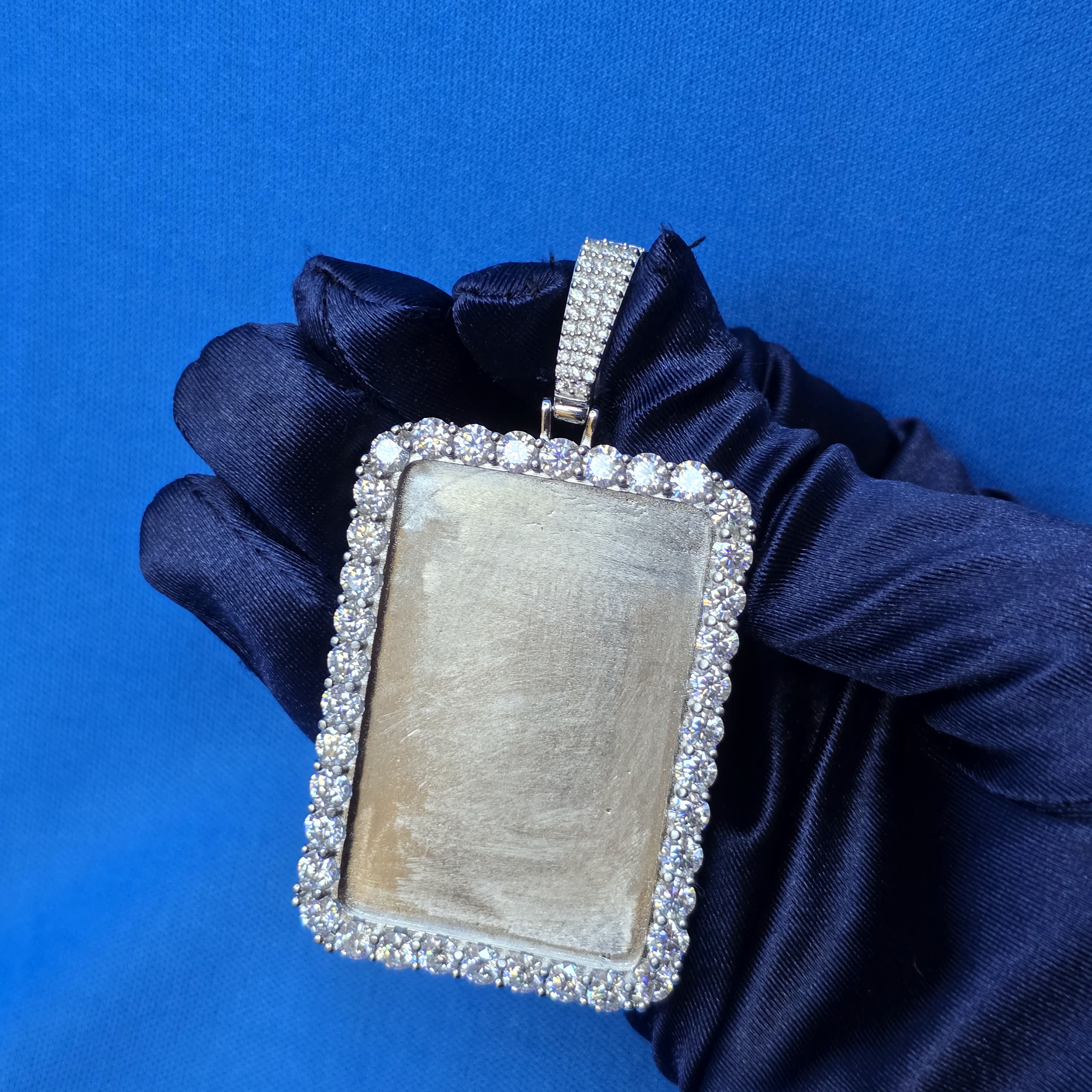 Capture the moments that matter with the House of Moissanite Rectangle Memory Pendant — a bold tribute crafted with precision and power. Featuring pointer-style stones and a clean rectangular frame, this piece is designed to honor lasting memories with striking brilliance.