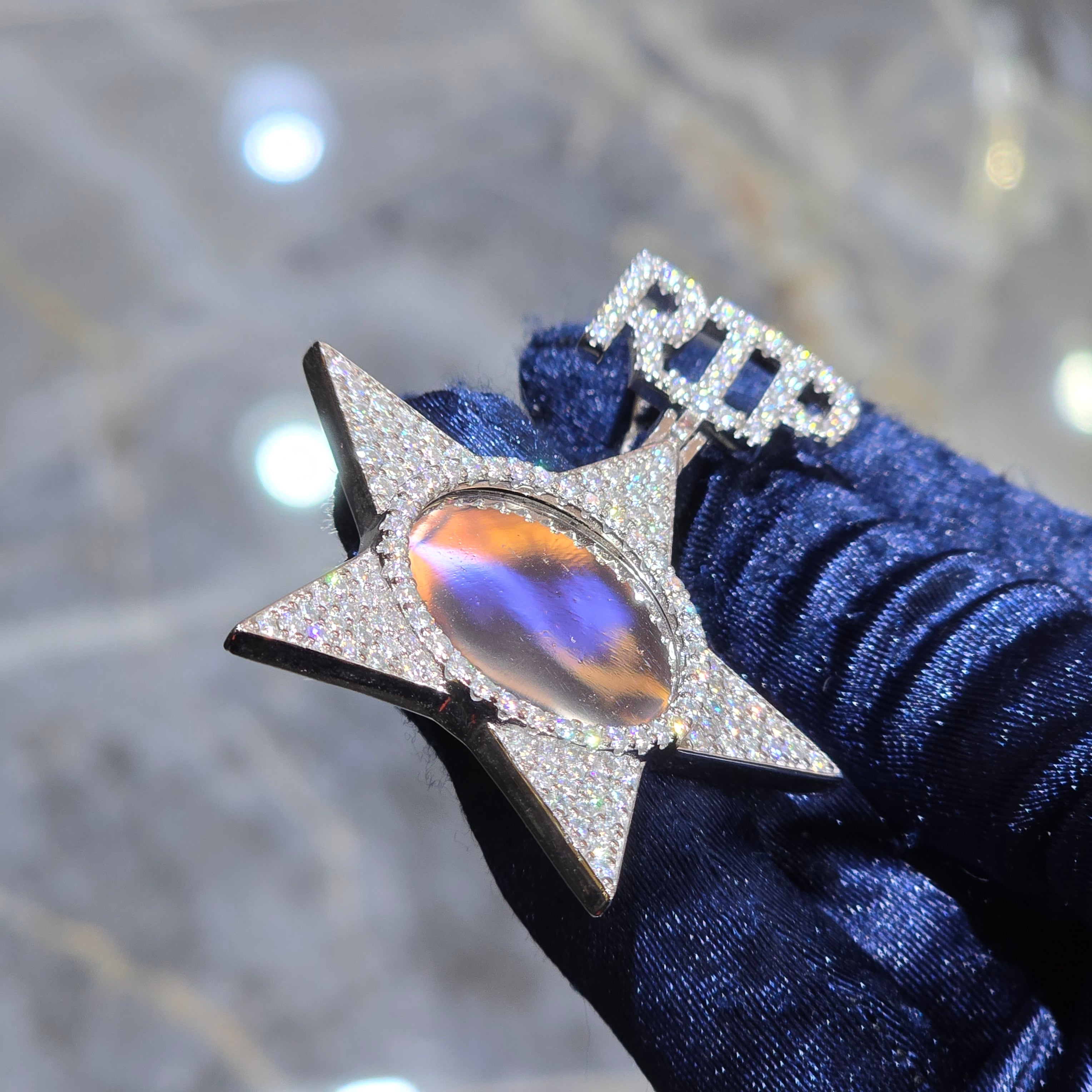 Keep their memory shining bright with the House of Moissanite Star Memory with RIP Pendant — a powerful tribute crafted in brilliance. Designed to honor and reflect, this piece captures remembrance with elegance and enduring sparkle.