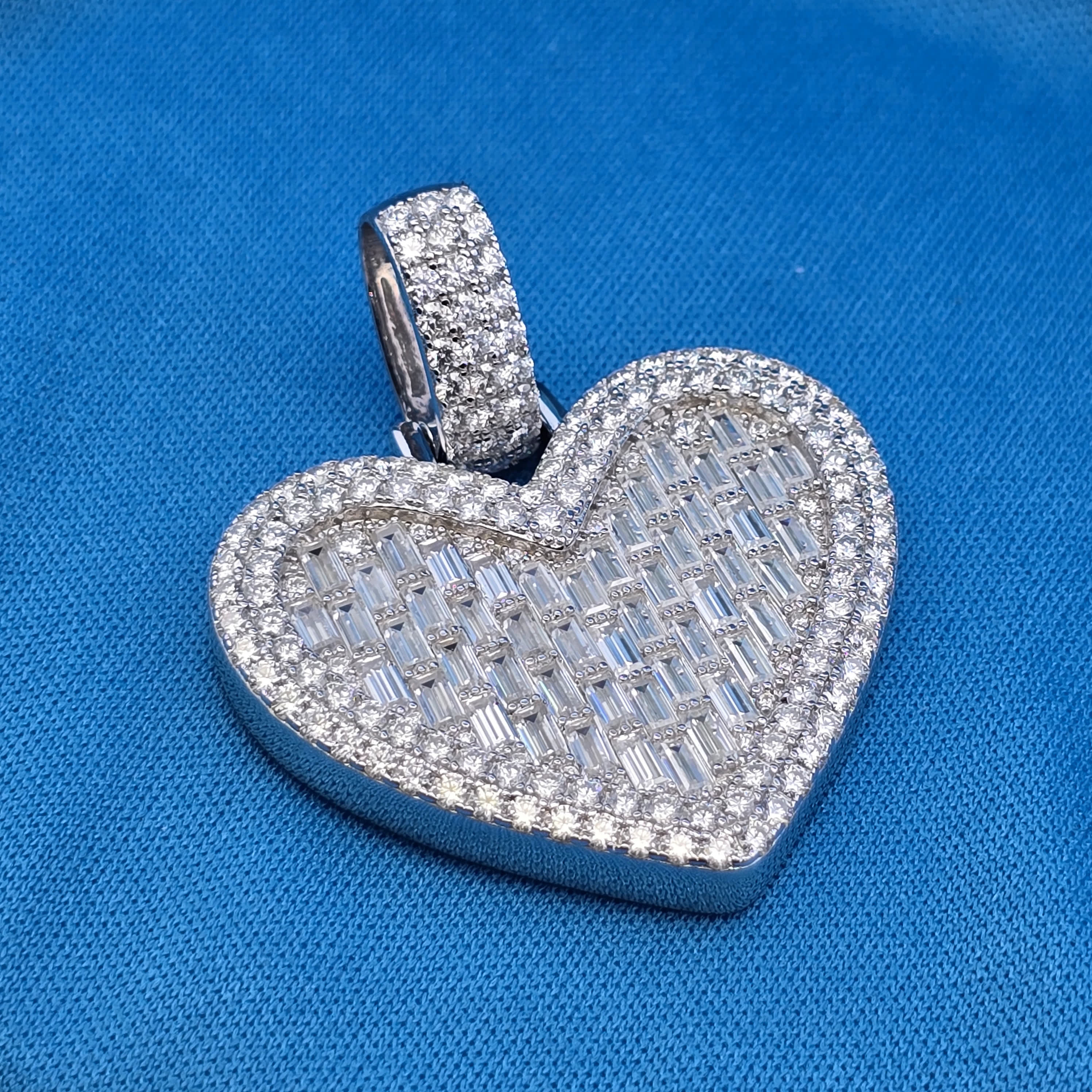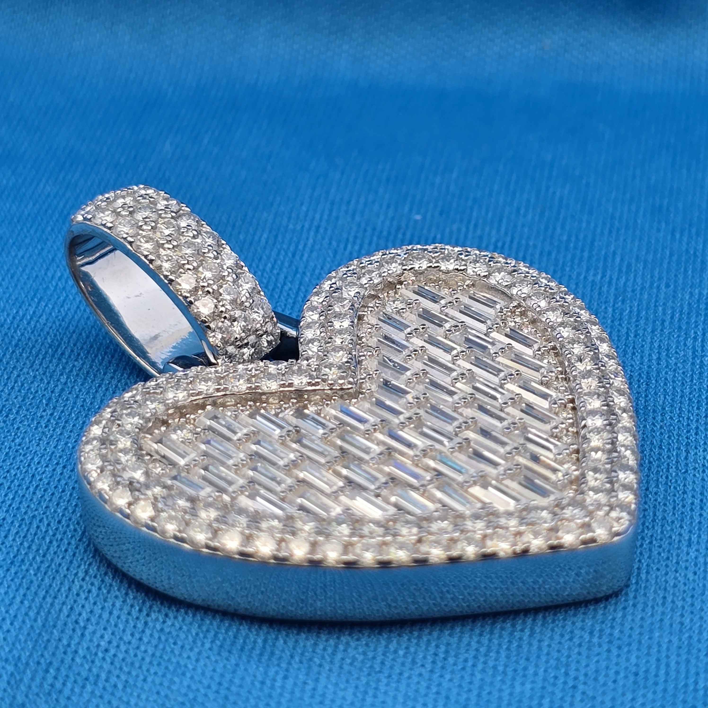 Elegant, radiant, and full of love — the House of Moissanite 5.7 CTW Baguette Heart Shape Pendant is the ultimate expression of affection and brilliance. Featuring a heart-shaped design adorned with stunning baguette-cut moissanite stones, this pendant is the perfect combination of timeless romance and exceptional sparkle.