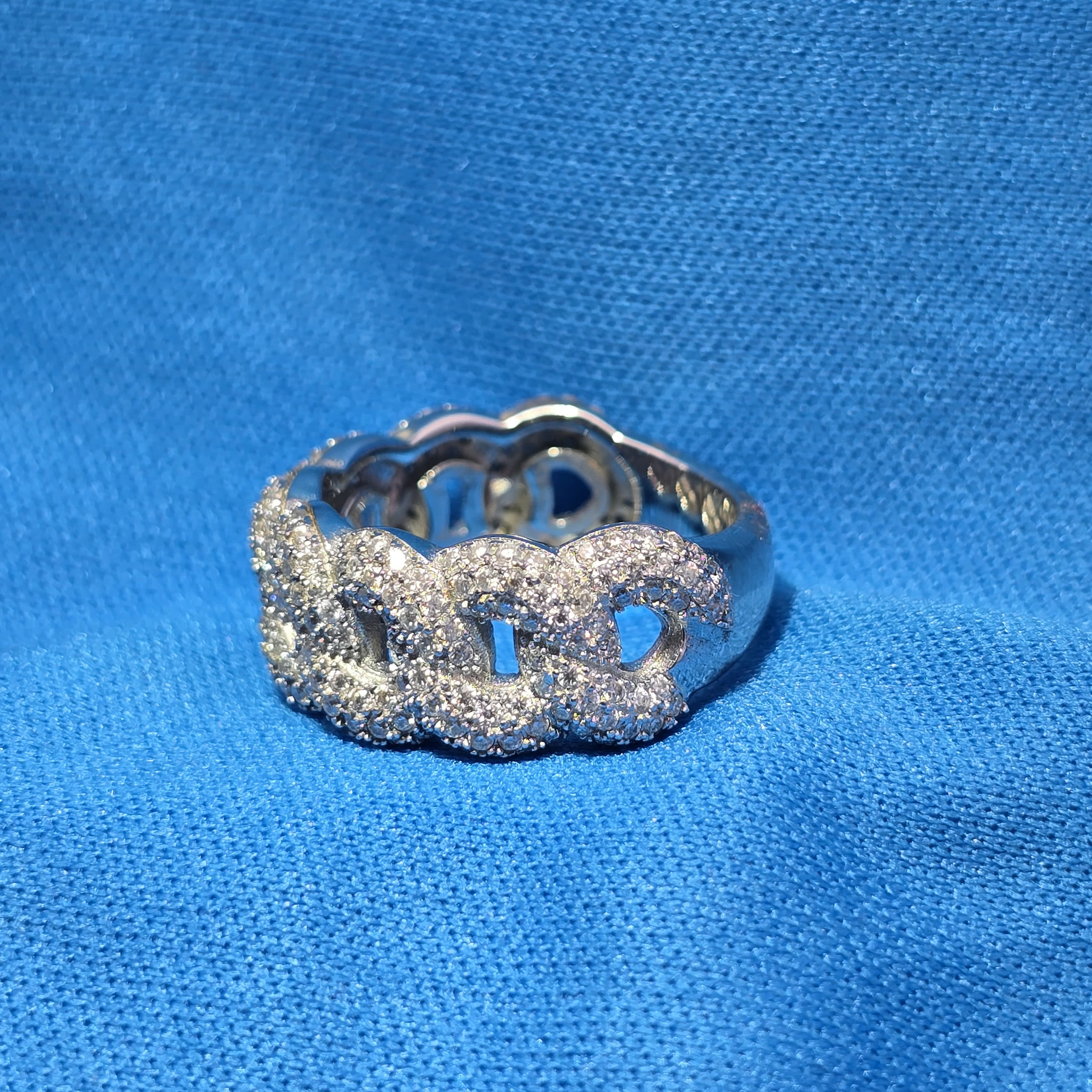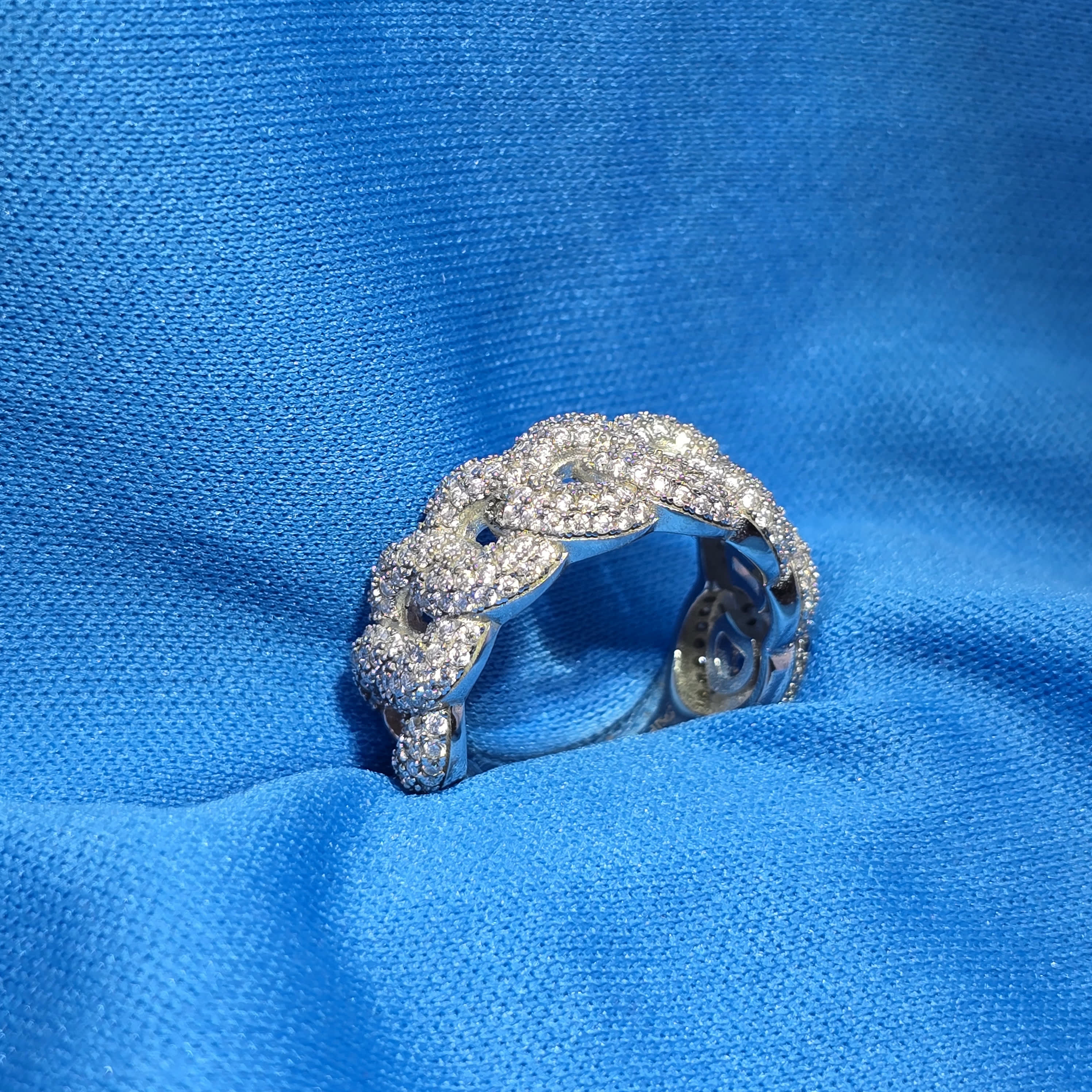 Link Band Design: Features an interlocking link design that gives the ring a modern, fluid look — elegant and unique in its structure.