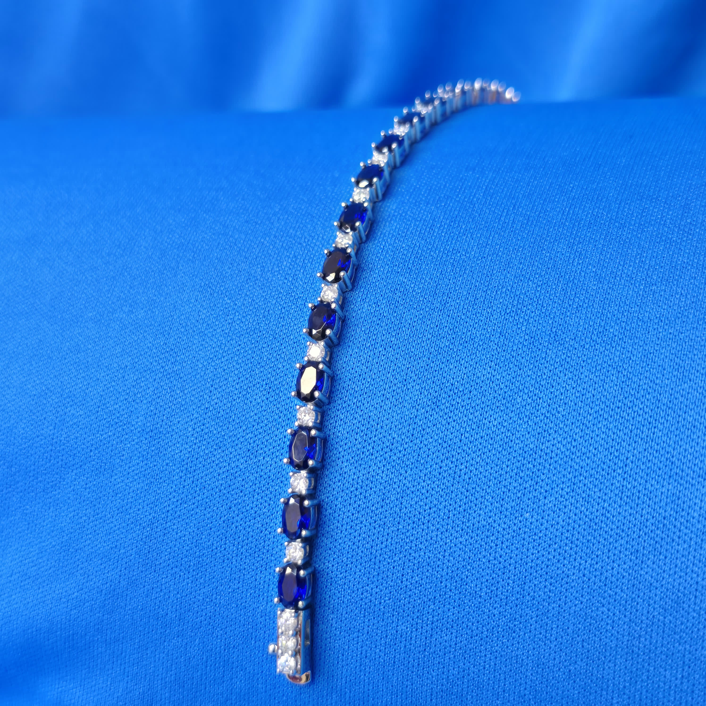 Oval-Cut Moissanite Stones: The bracelet features hand-set oval-cut moissanite diamonds, offering exceptional brilliance and clarity, with each stone shining beautifully from every angle.