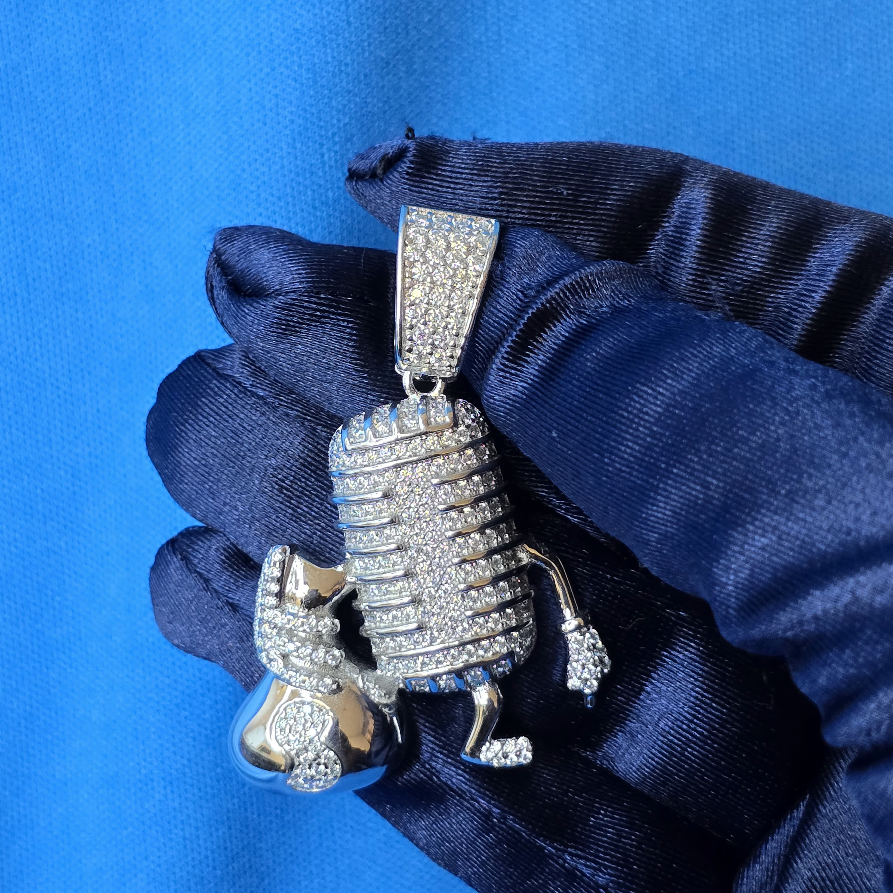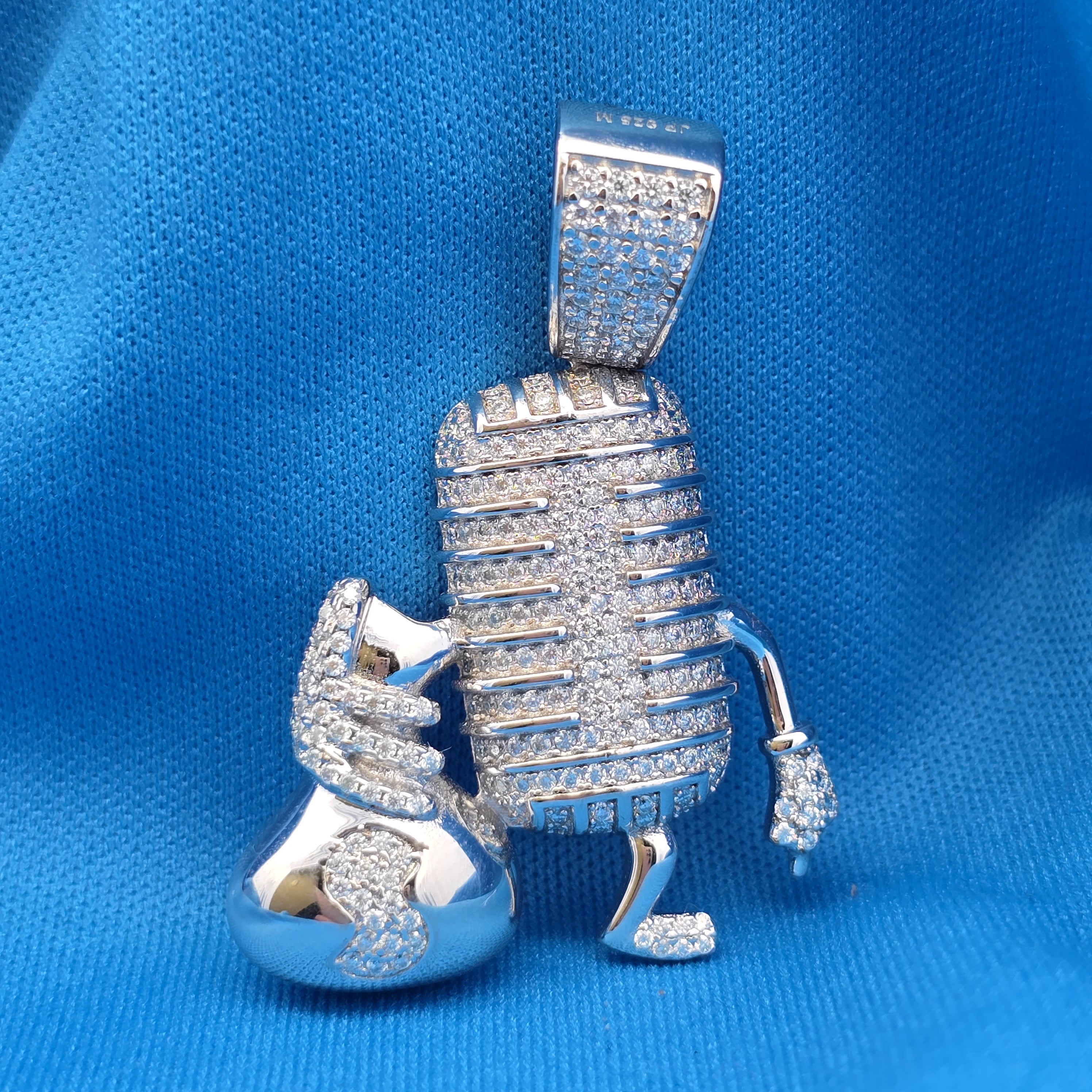 Speak success into existence with the House of Moissanite Mic with Money Bag Pendant — a bold symbol of hustle, ambition, and shine. Featuring a fully iced microphone and iconic money bag design, this pendant is built to represent the grind and the glow.