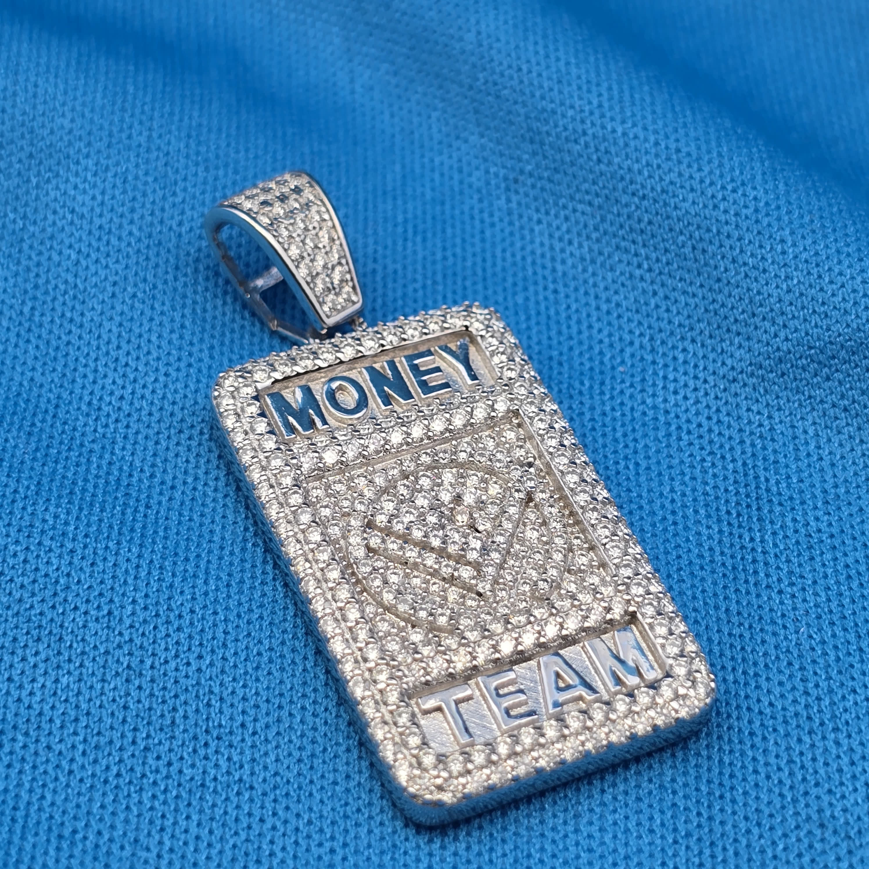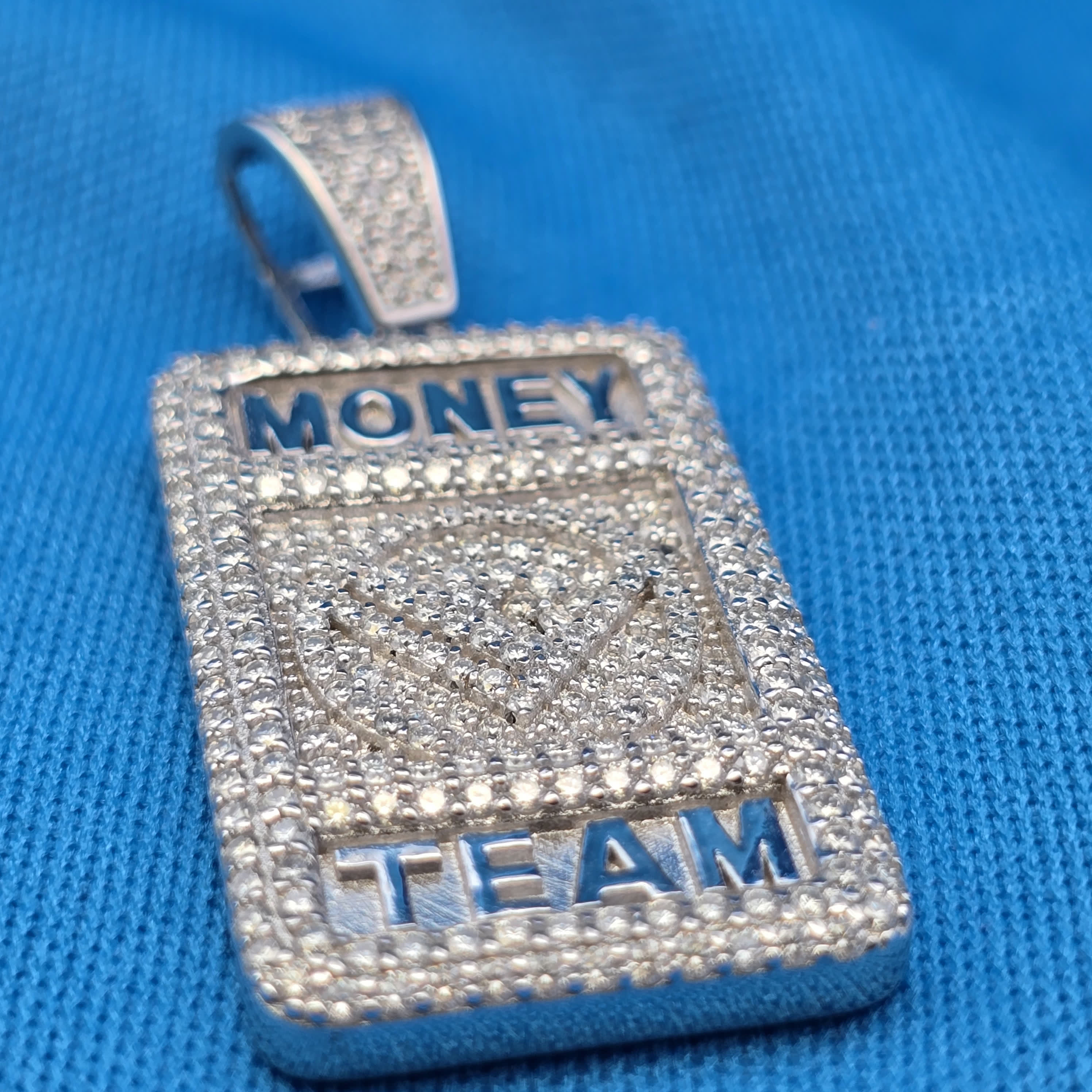 Money Team Design: The iconic Money Team design represents success, ambition, and the pursuit of greatness, making this pendant a bold expression of personal style and achievement.
