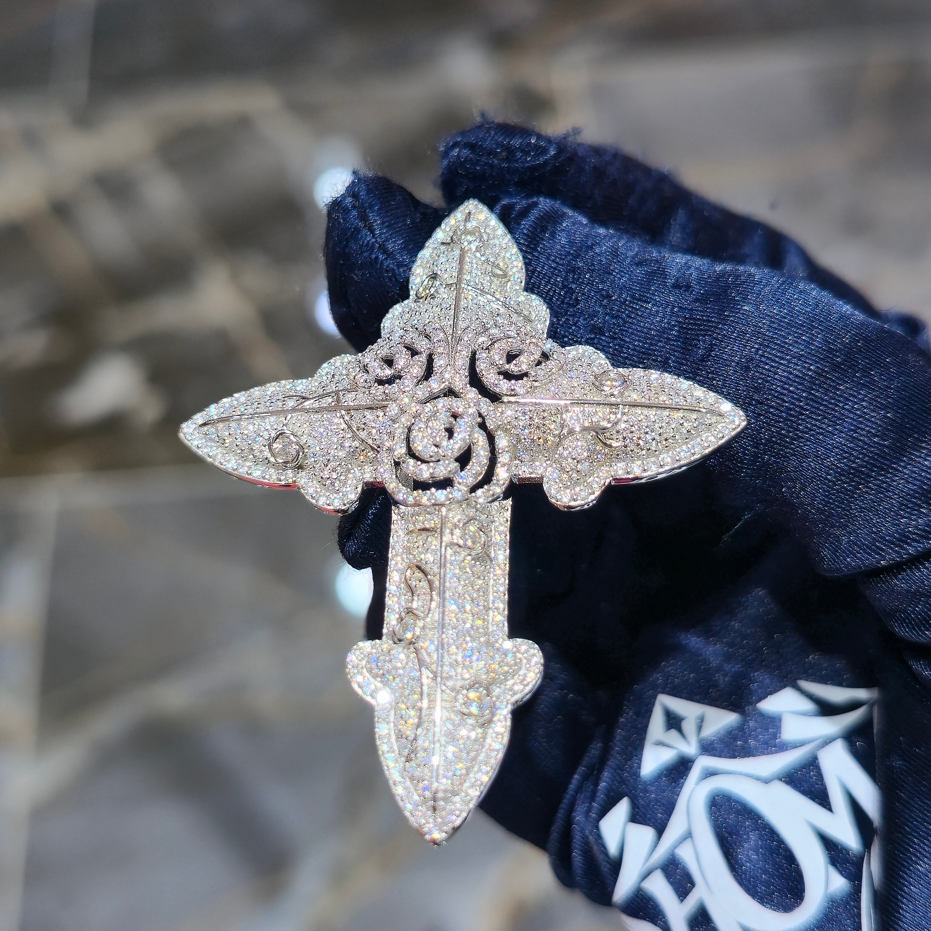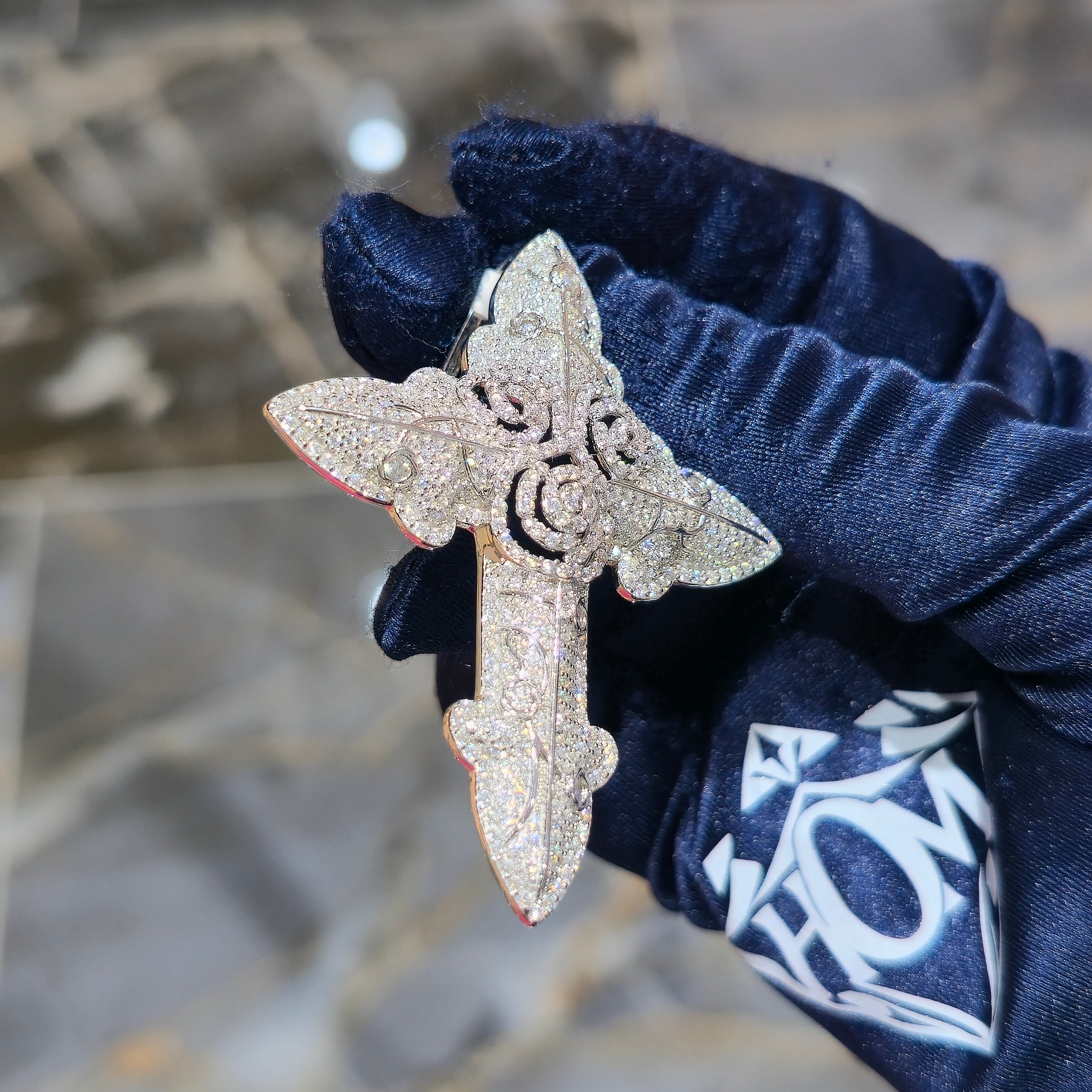 Radiant, powerful, and full of deep spiritual meaning — the House of Moissanite 31.52 CTW Rose Flower Jesus Pendant is a breathtaking fusion of divine faith and exceptional brilliance. Featuring a Jesus figure surrounded by a stunning rose flower design, this pendant is a powerful symbol of love, sacrifice, and eternal devotion, making it a truly extraordinary piece.