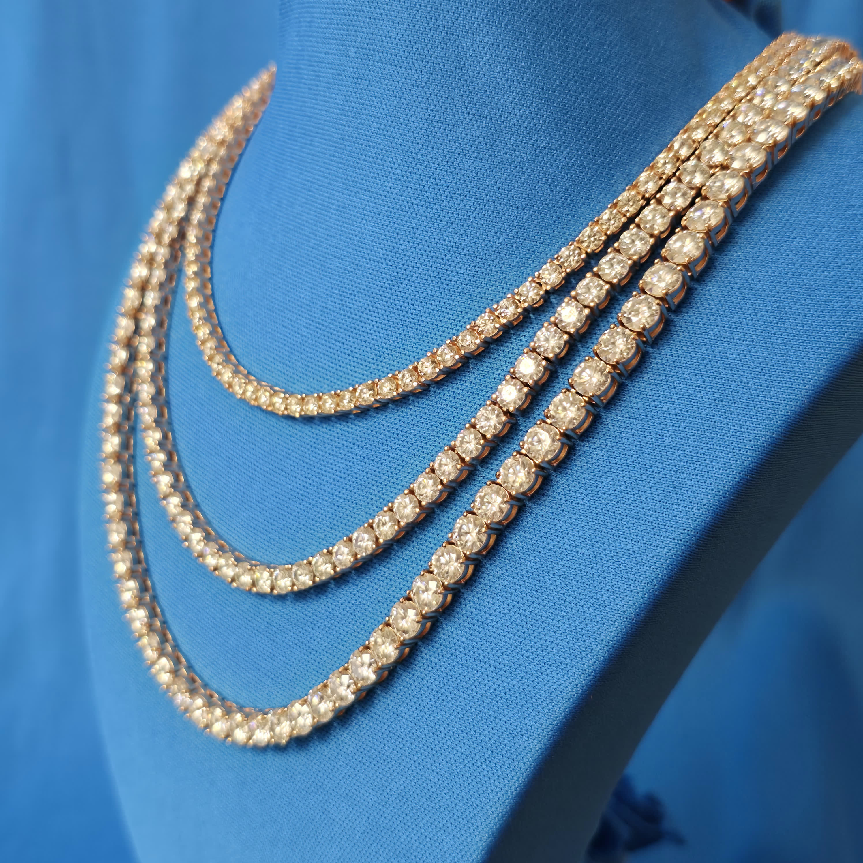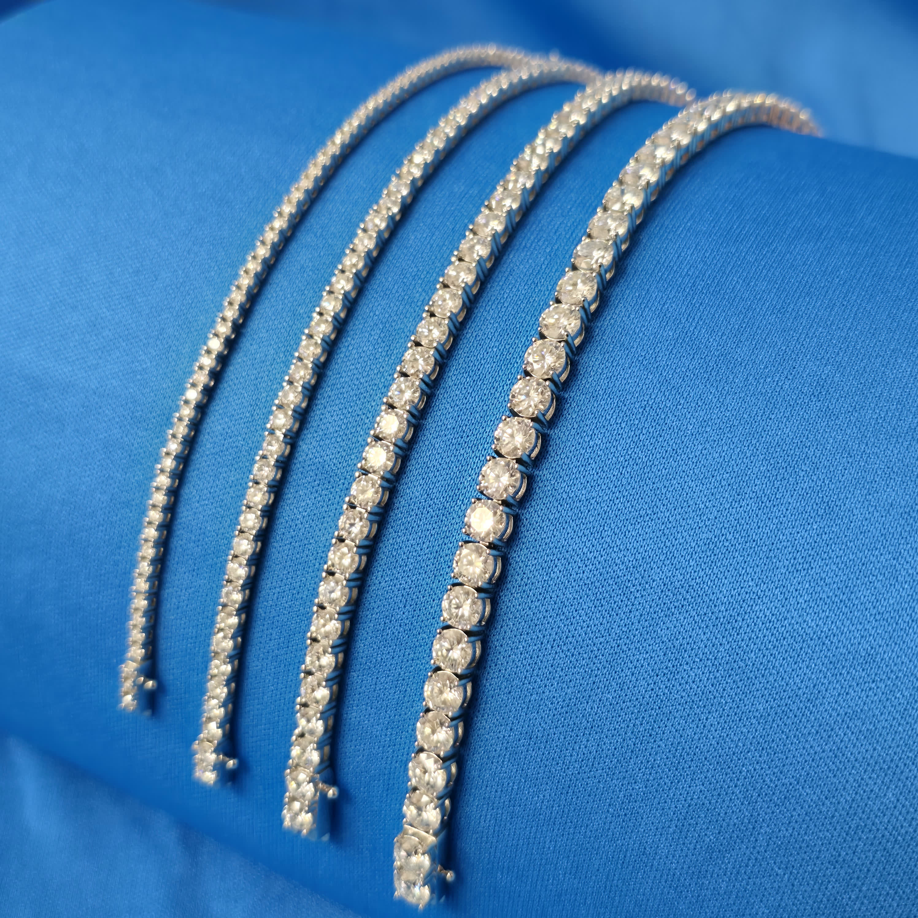 Tennis Chain Design: The classic tennis chain design offers a sleek, continuous flow of moissanite stones, making it the perfect blend of timeless style and modern luxury.